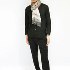 スタンダードな大判サイズで、首に巻くことはもちろん、室内でのひざ掛けにも、肩から羽織る使い方もできます。特に羽織りは、パッと華やかにエレガントな雰囲気に変わります。上半身を覆えるので、着ている服を気にせず合わせることができます。忙しい朝もコーディネートを気にする必要はありません。