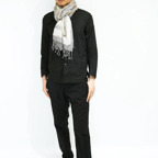 スタンダードな大判サイズで、首に巻くことはもちろん、室内でのひざ掛けにも、肩から羽織る使い方もできます。特に羽織りは、パッと華やかにエレガントな雰囲気に変わります。上半身を覆えるので、着ている服を気にせず合わせることができます。忙しい朝もコーディネートを気にする必要はありません。