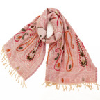 スタンダードな大判サイズで、首に巻くことはもちろん、室内でのひざ掛けにも、肩から羽織る使い方もできます。特に羽織りは、パッと華やかにエレガントな雰囲気に変わります。上半身を覆えるので、着ている服を気にせず合わせることができます。忙しい朝もコーディネートを気にする必要はありません。