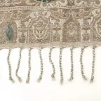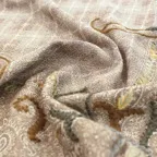ベースカラーと同トーンでまとめられた統一感のある立体刺繍ストール。巻きはもちろん、羽織物やひざ掛けとしても重宝します。