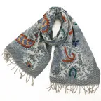 スタンダードな大判サイズで、首に巻くことはもちろん、室内でのひざ掛けにも、肩から羽織る使い方もできます。特に羽織りは、パッと華やかにエレガントな雰囲気に変わります。上半身を覆えるので、着ている服を気にせず合わせることができます。忙しい朝もコーディネートを気にする必要はありません。