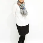 スタンダードな大判サイズで、首に巻くことはもちろん、室内でのひざ掛けにも、肩から羽織る使い方もできます。特に羽織りは、パッと華やかにエレガントな雰囲気に変わります。上半身を覆えるので、着ている服を気にせず合わせることができます。忙しい朝もコーディネートを気にする必要はありません。
