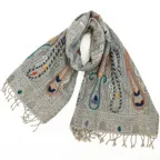 スタンダードな大判サイズで、首に巻くことはもちろん、室内でのひざ掛けにも、肩から羽織る使い方もできます。特に羽織りは、パッと華やかにエレガントな雰囲気に変わります。上半身を覆えるので、着ている服を気にせず合わせることができます。忙しい朝もコーディネートを気にする必要はありません。