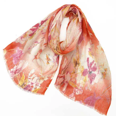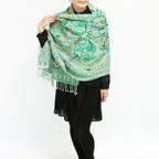 スタンダードな大判サイズで、首に巻くことはもちろん、室内でのひざ掛けにも、肩から羽織る使い方もできます。特に羽織りは、パッと華やかにエレガントな雰囲気に変わります。上半身を覆えるので、着ている服を気にせず合わせることができます。忙しい朝もコーディネートを気にする必要はありません。