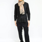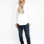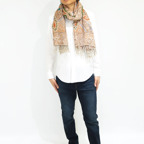 スタンダードな大判サイズで、首に巻くことはもちろん、室内でのひざ掛けにも、肩から羽織る使い方もできます。特に羽織りは、パッと華やかにエレガントな雰囲気に変わります。上半身を覆えるので、着ている服を気にせず合わせることができます。忙しい朝もコーディネートを気にする必要はありません。