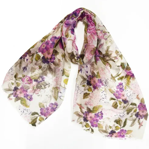 バランスの良い大判サイズで、巻きでも羽織でもどちらも使いやすいストールです。特に羽織は全面に施された刺繍が美しく輝き、サッとあしらうだけで全体の印象を大きく変えてくれます。