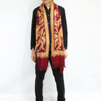 全面に施されたアーリ刺繍は誰もが振り返るほどの美しさ。ひとたび羽織ればパッと華やかにゴージャスな雰囲気に変わります。上半身を覆えるので、着ている服を気にせず合わせることができます。