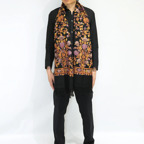 ウール100%の生地を埋め尽くす、息をのむアーリ手刺繍の世界。服飾の域を超えた芸術品。額装して飾りたくなるほどの美しさです。