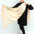 このカシミヤストールには最も繊細なインドカシミール地方ラダック産カシミヤ糸(パシュミナ)が使われています。そのため手織りカシミアストールの中でも最も目が細く繊細な生地となっています。薄くて軽くてやわらかい最上級の一枚です。