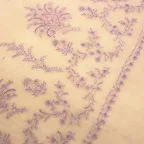 こちらは、一点一点手作業品となります。繊細な生地にデリケートな刺しゅうを施してありますので、お取り扱いには十分ご注意ください。