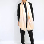 このカシミヤストールには最も繊細なインドカシミール地方ラダック産カシミヤ糸(パシュミナ)が使われています。そのため手織りカシミアストールの中でも最も目が細く繊細な生地となっています。薄くて軽くてやわらかい最上級の一枚です。