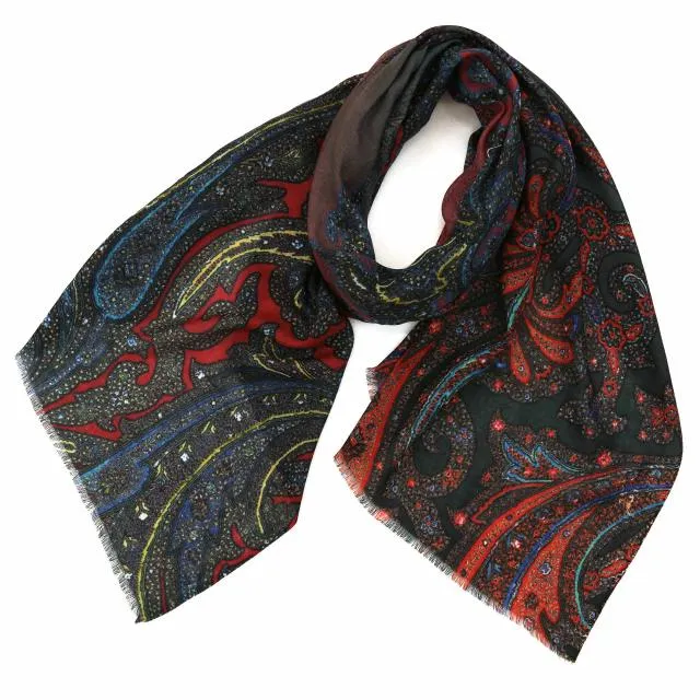 バランスの良い大判サイズで、巻きでも羽織でもどちらも使いやすいストールです。特に羽織は全面に施された刺繍が美しく輝き、サッとあしらうだけで全体の印象を大きく変えてくれます。