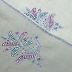 こちらは、一点一点手作業品となります。繊細な生地にデリケートな刺しゅうを施してありますので、お取り扱いには十分ご注意ください。