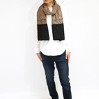 195cm×100cm大判ショールサイズで、巻きでも羽織でもどちらも使いやすいストールです。特に羽織は全面に施された刺繍が美しく輝き、サッとあしらうだけでゴージャスな雰囲気に変化します。横幅が特に長いのでドレスや着物などの羽織物としても重宝します。