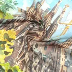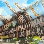 モダンな建物柄スカーフ。出す面によって表情も変えやすいおしゃれな一枚です!