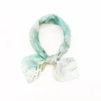 65cm×65cmの小判スカーフで、アスコットタイのようにシャツやブラウスの中におさめて使うこともできます。室内でも巻いたままでいられるので使いやすくなっています。