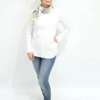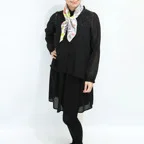 65cm×65cmの小判スカーフで、アスコットタイのようにシャツやブラウスの中におさめて使うこともできます。室内でも巻いたままでいられるので使いやすくなっています。