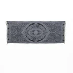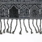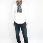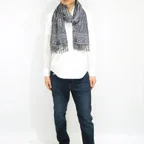 スタンダードな大判サイズで、首に巻くことはもちろん、室内でのひざ掛けにも、肩から羽織る使い方もできます。特に羽織りは、パッと華やかにエレガントな雰囲気に変わります。上半身を覆えるので、着ている服を気にせず合わせることができます。忙しい朝もコーディネートを気にする必要はありません。