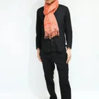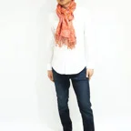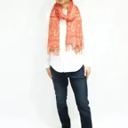 スタンダードな大判サイズで、首に巻くことはもちろん、室内でのひざ掛けにも、肩から羽織る使い方もできます。特に羽織りは、パッと華やかにエレガントな雰囲気に変わります。上半身を覆えるので、着ている服を気にせず合わせることができます。忙しい朝もコーディネートを気にする必要はありません。