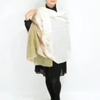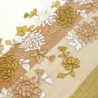 全面に施されたアーリ刺繍が美しく、品の良い女性らしい装いを叶えてくれます。カジュアルな普段使いはもちろん、フォーマルなシーンにも使いやすく、さらに和装とも相性が非常に良くなっています。スタイルや場所を問わず合わせることができる優れたストールです。