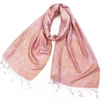 しなやかな風合い、美しい艶、極上シルクのジャカードストール。優しい色使いで装いの程よいアクセントにぴったりです!