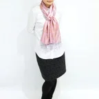 シルク100%の品の良い光沢感と美しいドレープが相まって、フォーマルな場面やパーティーシーンで大活躍します。シャツやブラウス、ドレスやスーツ、ジャケットなどのトップスと相性が抜群で、一巻きでいつものファッションを格上げできます。