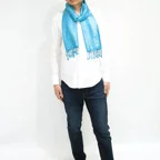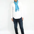 さらにアクセントとしてならカジュアルな装いにも合わせやすい、とても使い勝手の良いストールです。