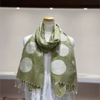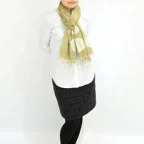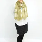 スタンダートな大判サイズで肩から羽織る使い方もできます。春夏の日除けや冷房対策としても使いやすくなっています。もちろんファッションのアクセントとしてなら一年中使うことができます。