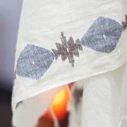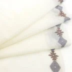 まるで刺繍を施すかのように、模様を出したい部分の横糸を切り替えて織り柄を表現したジャムダニ織り。丁寧に織り込まれた生地は、立体感のある美しい織り柄に仕上がっています。