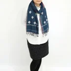 スタンダートな大判サイズで肩から羽織る使い方もできます。春夏の日除けや冷房対策としても使いやすくなっています。もちろんファッションのアクセントとしてなら一年中使うことができます。