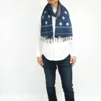 スタンダートな大判サイズで肩から羽織る使い方もできます。春夏の日除けや冷房対策としても使いやすくなっています。もちろんファッションのアクセントとしてなら一年中使うことができます。