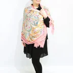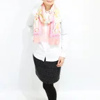 淡いカラーがふんわりと重なり、他にはない色使いを演出。無造作に巻いても見栄える一枚です。