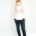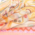 淡いカラーがふんわりと重なり、他にはない色使いを演出。無造作に巻いても見栄える一枚です。