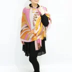 スタンダードな大判サイズで巻きでも羽織でもどちらでも使いやすくなっています。特に春夏の日除けや冷房対策としても使いやすく、ファッションのアクセントとしてなら一年中使うことができます。