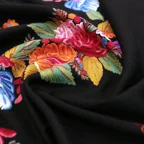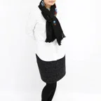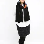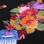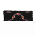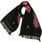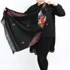 コントラストの効いた手刺繍が美しい一枚。日常が優雅に変わる。大人の女性のためのドレスアップストールです。