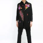 コントラストの効いた手刺繍が美しい一枚。日常が優雅に変わる。大人の女性のためのドレスアップストールです。
