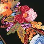 刺繍部は全て手仕事によって行われています。そのため、刺繍の裏地は処理しきれなかった糸が出ている箇所がございます。刺繍部の素材はコットン・レーヨンとなっております。