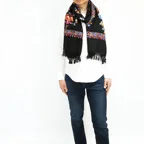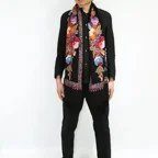 全面に施されたアーリ刺繍は誰もが振り返るほどの美しさ。ひとたび羽織ればパッと華やかにゴージャスな雰囲気に変わります。上半身を覆えるので、着ている服を気にせず合わせることができます。