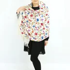 全面に施されたアーリ刺繍は誰もが振り返るほどの美しさ。ひとたび羽織ればパッと華やかにゴージャスな雰囲気に変わります。上半身を覆えるので、着ている服を気にせず合わせることができます。
