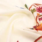視線を集めながら、決して騒がない上品なデザイン。清楚なホワイトベースに鮮やかな刺繍糸のコントラストが絶妙な一枚です。
