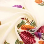 刺繍部は全て手仕事によって行われています。そのため、刺繍の裏地は処理しきれなかった糸が出ている箇所がございます。刺繍部の素材はコットン・レーヨンとなっております。