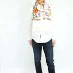 全面に施されたアーリ刺繍は誰もが振り返るほどの美しさ。ひとたび羽織ればパッと華やかにゴージャスな雰囲気に変わります。上半身を覆えるので、着ている服を気にせず合わせることができます。
