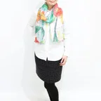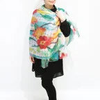大判サイズのストールで肩から羽織る使い方もできます。春夏の日除けや室内の冷房対策としても使いやすくなっています。