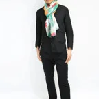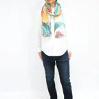 大判サイズのストールで肩から羽織る使い方もできます。春夏の日除けや室内の冷房対策としても使いやすくなっています。
