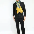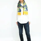 大判サイズのストールで肩から羽織る使い方もできます。春夏の日除けや室内の冷房対策としても使いやすくなっています。
