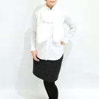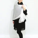 生地の向こうに透けるトップスや素肌が美しく見える、まるでメイクの仕上げに使うパウダーのようなストール。程よいハリ感があり、肌に付かず離れずの質感になっています。絶妙なボリューム感と美しいシルエットも他とは違う大きな魅力です。
