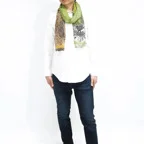 バランスの良いミドルサイズで巻きだけでなく羽織でも合わせやすいタイプ。程よい弾力性もありシワもつきにくいストールです。シワを気にすることなく、使いたい時にすぐに使うことができます。