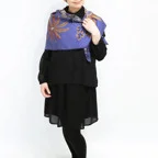 スクエアサイズで、アスコットタイのようにシャツやブラウスの中におさめて使うこともできます。室内でも巻いたままでいられるので使いやすくなっています。