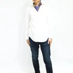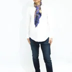 スクエアサイズで、アスコットタイのようにシャツやブラウスの中におさめて使うこともできます。室内でも巻いたままでいられるので使いやすくなっています。