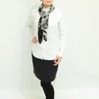 スクエアサイズで、アスコットタイのようにシャツやブラウスの中におさめて使うこともできます。室内でも巻いたままでいられるので使いやすくなっています。